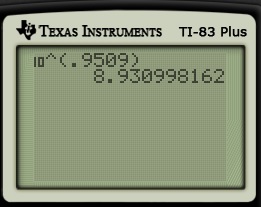 . Therefore, $10^{0.9509} \approx 8.93$. Again, this matches (to three and almost four significant digits) the result of a modern calculator.