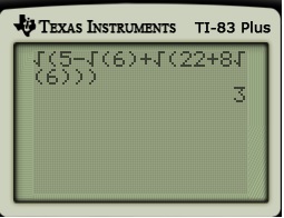 Just look at this monstrosity, which has a triply-embedded square root! But then look what happens when I plug into a calculator: