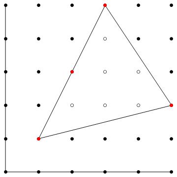 points (marked red) that are on the boundary of the triangle, including the three corners.