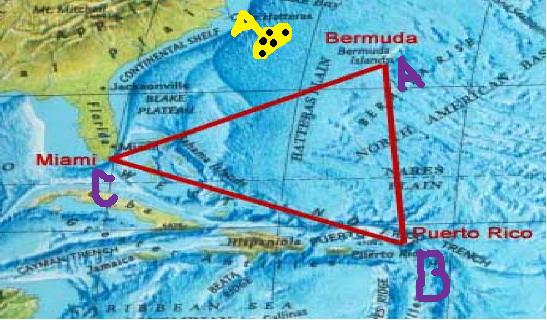 An interesting topic that is still around today, is the Bermuda Triangle. After a brief introduction of the definition of an obtuse, right, and acute triangle, I will pose this problem: (There will be a picture of the Bermuda triangle with points labeled, (posted below).)