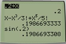 This generates a pretty predictable reaction, “Whoa; it actually works!” Of course, this shouldn’t be a surprise; calculators actually use the Taylor series expansion (and a few trig identity tricks) when calculating sines and cosines. So, I’ll tell my class,