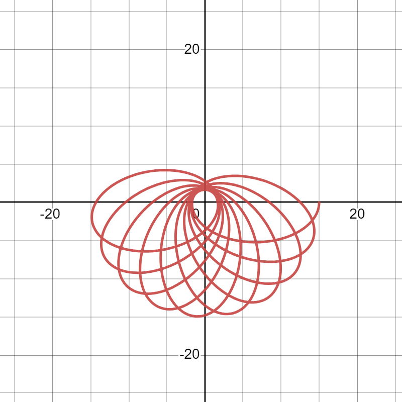 In the above figure, the spiral stopped “spiraling” because I had asked Desmos only to show the graph between . If I had changed the upper bound to something larger than