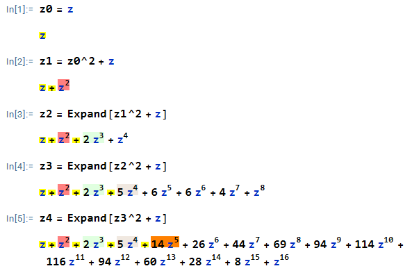 My second thought was to use Mathematica to develop my own intuition and to confirm that the claimed pattern actually worked for the first few values of .