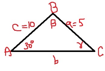 \displaystyle \frac{\sin 30^\circ}{5} = \displaystyle \frac{\sin \gamma}{10}