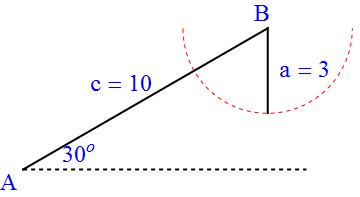 Solve \triangle ABC if a = 3, c = 10, and \alpha = 30^\circ.