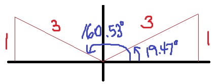 \gamma \approx 19.47^\circ \qquad \hbox{and} \qquad \gamma \approx 160.53^\circ