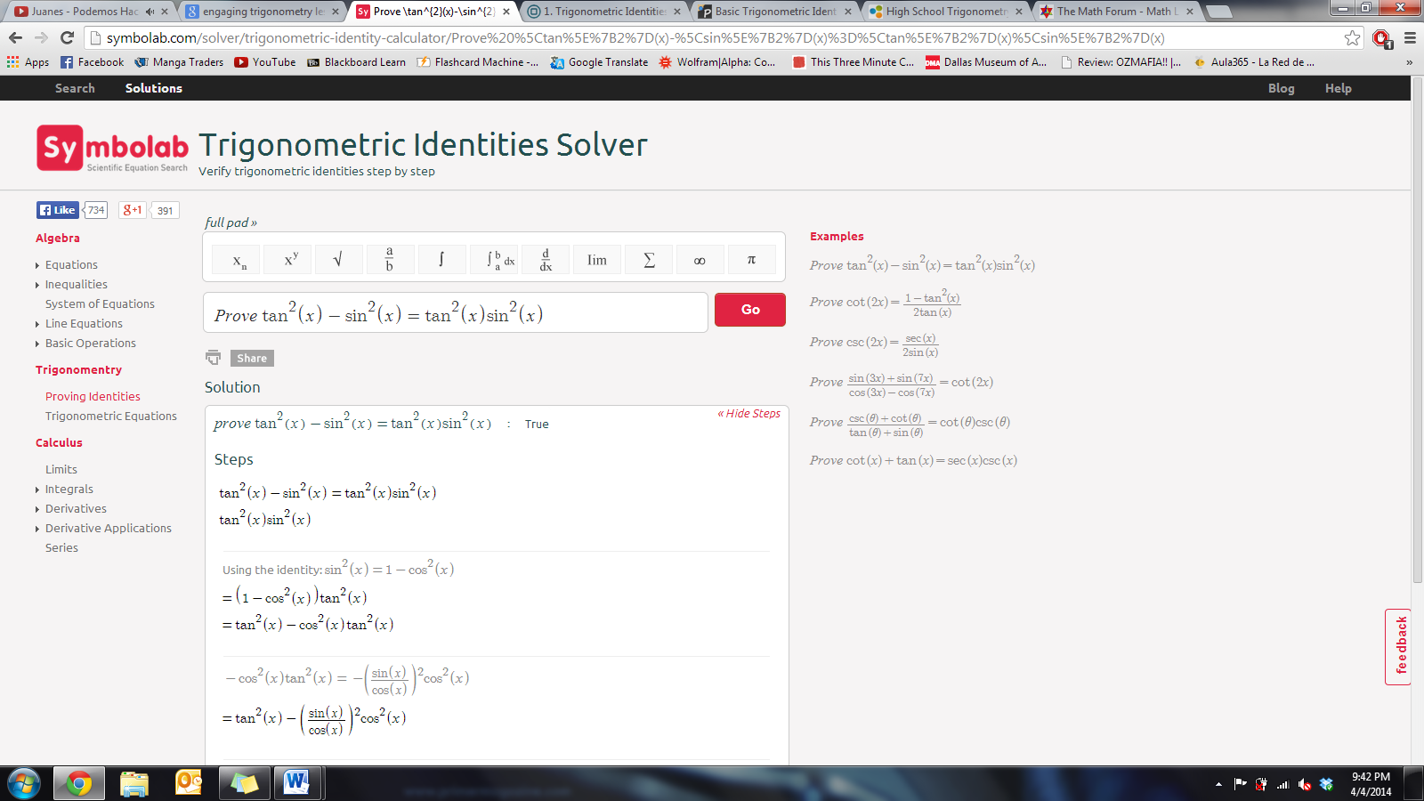 This student submission comes from my former student Michelle McKay. Her topic, from Precalculus: verifying trigonometric identities.